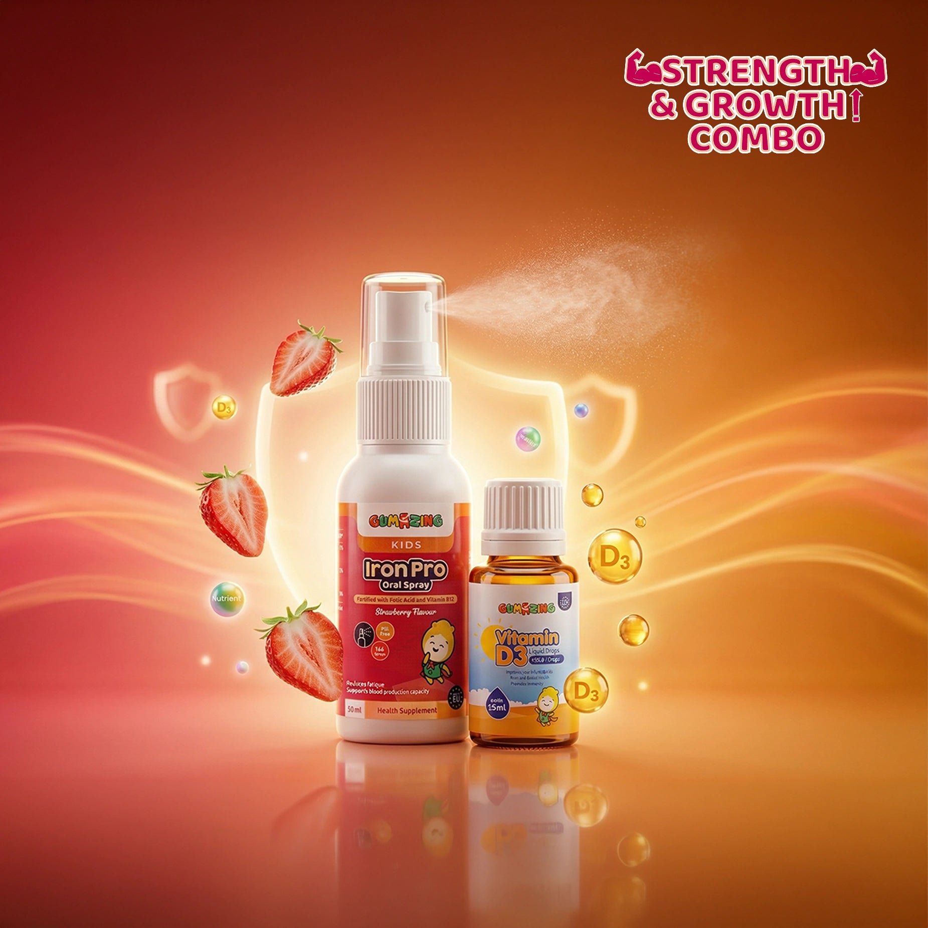 القوة & مجموعة النمو | بخاخ IronPro + قطرات فيتامين د3