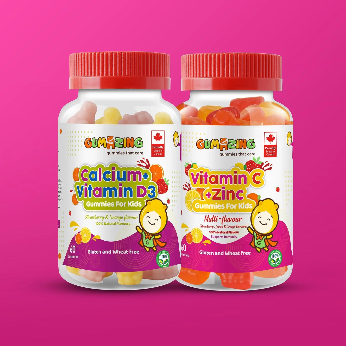 <tc>غومازينغ</tc>عبوة مكونة من قطعتين | كالسيوم وفيتامين د3 + فيتامين سي والزنك، إمداد لمدة شهرينRegular price