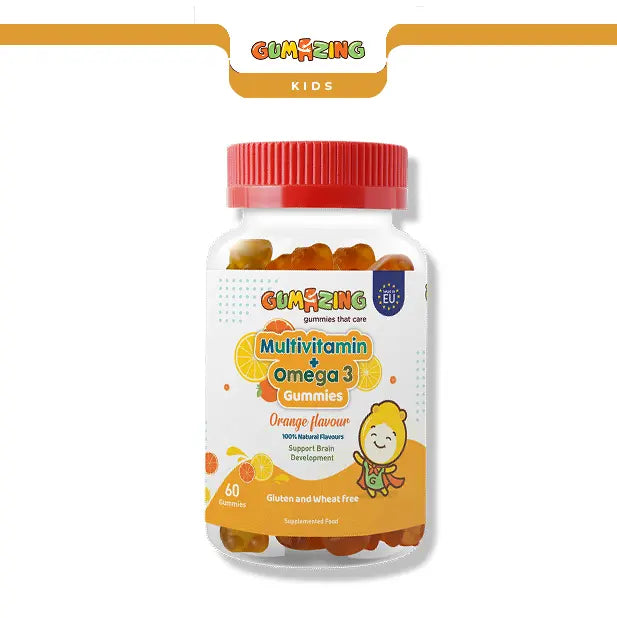 Support your child's growth, brain development, and overall well-being with Gumazing Multivitamin + Omega 3 Gummies. These delicious orange-flavored gummies are packed with essential vitamins, minerals, and Omega 3 (DHA) to promote a healthy mind and body.